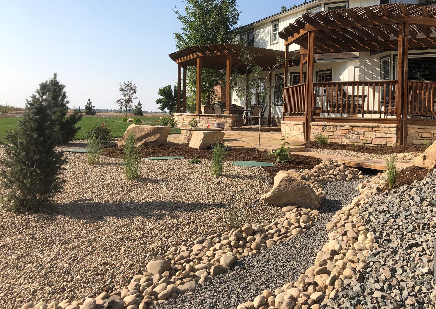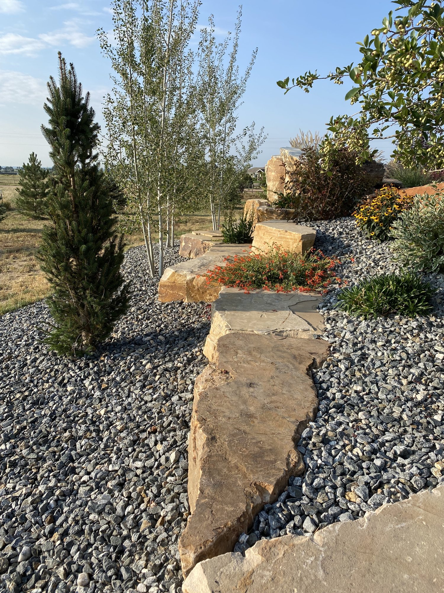 Landscaping is the first impression one has of a home. A well designed and constructed landscape not only brings enjoyment and pride to the owner but also enhances curb appeal and increases property value. Our projects include commercial landscape installation, designing and installing landscaping for new homes and remodeling existing landscaping. We have access to a wide variety of landscaping materials and work with local growers to provide only the best native plants. This enables us to tailor a landscape to your specific property and vision. When working in new developments, we maximize the design within the HOA requirements and manage the project from beginning to end, ensuring properly drawn plans, meeting necessary plant quotas, and exceeding neighborhood quality expectations. Whether designing and building a natural and native Rocky Mountain landscape, something more contemporary and linear, or a low water xeriscape, we approach each project with the thought and care that is required to produce a visually stunning landscape that fits the needs of each customer.